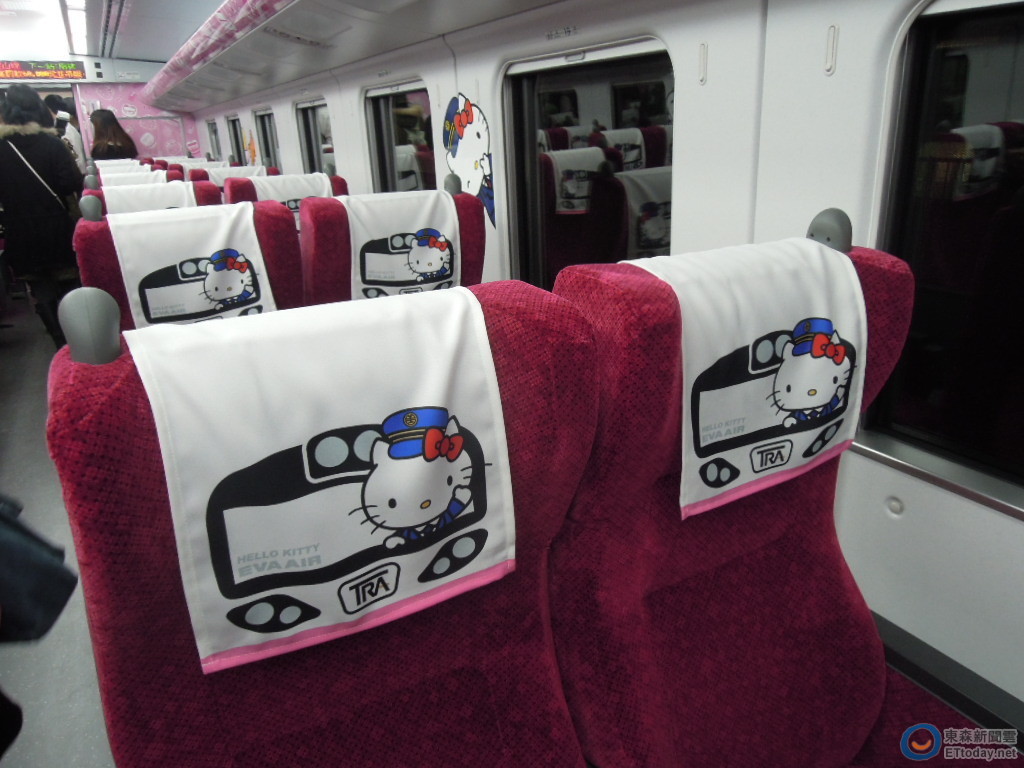 ▲Hello Kitty彩繪列車首航就被偷走328條枕巾。(圖/記者賴文萱攝)