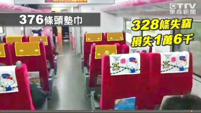 台鐵新太魯閣Hello Kitty彩繪列車風光首航,但首航當天車內的Kitty座位枕巾就被旅客拿走,總計缺少328條。Kitty枕巾事件創造話題,有媒體報導台鐵改口表示「頭巾被帶走」是另類行銷手法,台鐵則嚴正回應「絕無改口」,未來會更換枕巾材質,也考慮推出同款頭巾銷售。