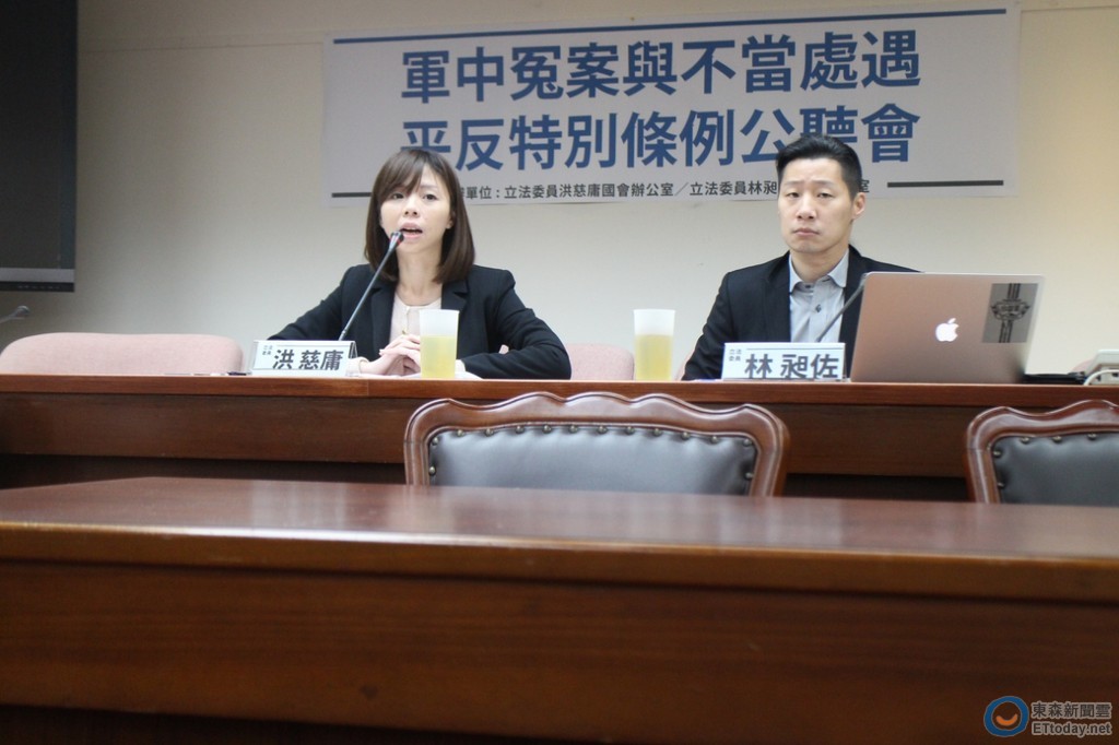 時代力量立法委員洪慈庸、林昶佐,民進黨立法委員顧立雄、蔡易餘25日舉行「軍中冤案與不當處遇調查及補償條例公聽會」。洪慈庸說,2013年8月3日「萬人送仲丘」的晚會,許多父母帶著孩子的遺照來到後台,希望能為自己的子弟討回公道,這讓她非常震驚,還有許多含冤莫白的軍中案件,她希望能透過立法的方式,設立獨立機關,針對冤屈案件重啟調查。