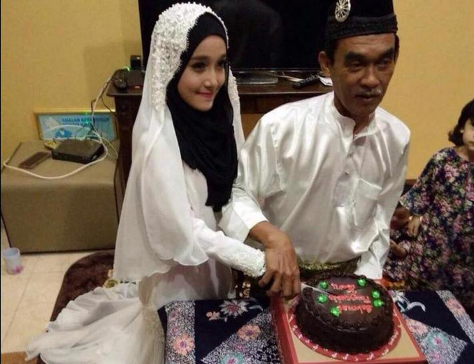 這段「爺孫戀」的主角是18歲的努娜希拉和62歲的依斯邁,他們開心切著結婚蛋糕的照片引來網路上各式各樣的聲音。有人表示祝福,也有人大力「唱衰」,更多人酸溜溜地揶揄依斯邁「老牛吃嫩草」。
