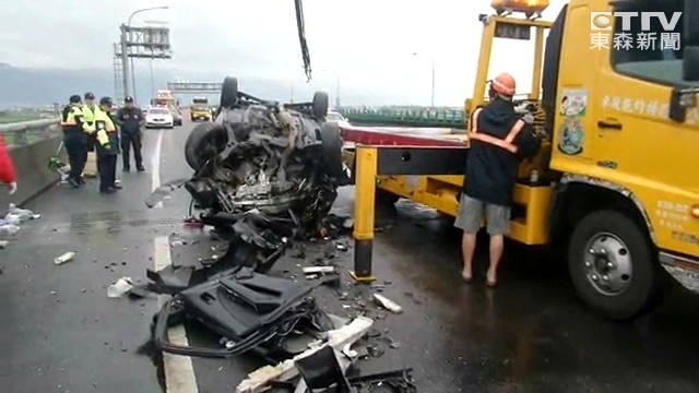 另外,莊女的臉部和四肢也有多處撕裂傷,目前昏迷指數6,還在加護病房觀察。警方動用吊車將肇事車輛吊離現場,才讓封閉約1小時的宜蘭交流道恢復通車。