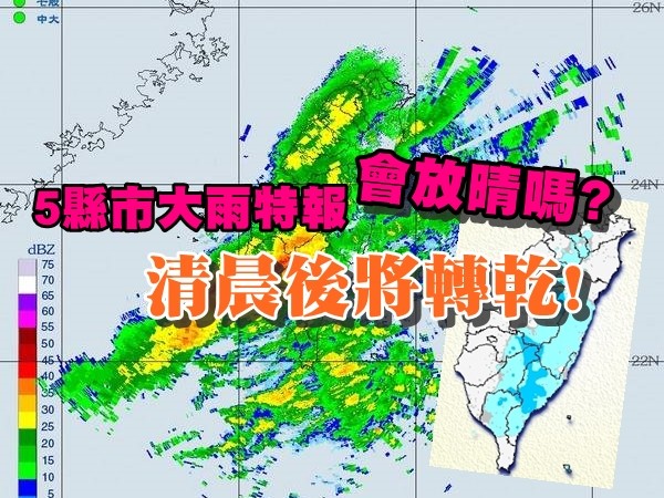 最後一夜降雨!中央氣象局25日晚間7時持續針對5縣市南投、台中、嘉義、高雄及台東山區發布大雨特報,其他地區晚間則雨勢稍緩,預計全台還是會有一些短暫雨,到26日清晨水氣就會漸少。許多民眾懷疑,「雨這麼大明天真的會停?」天氣風險公司總經理彭啟明則說「沒問題」,周末天氣將會轉乾。