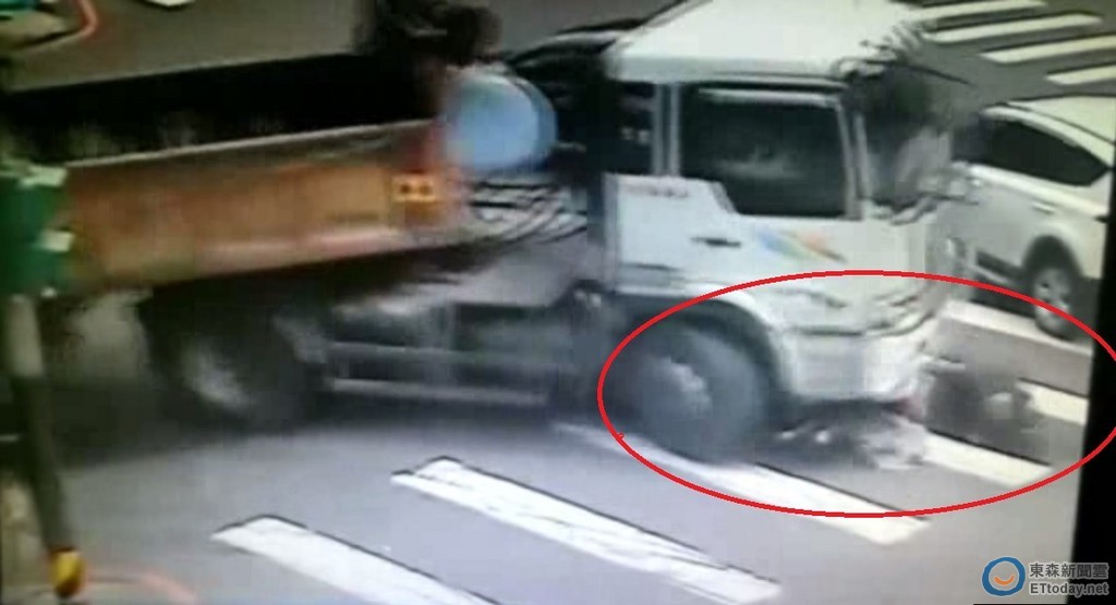 ▲砂石車轉彎視線死角肇禍,走斑馬線老翁遭輾入車底,驚險一線間。(圖/記者孫曜樟翻攝)
