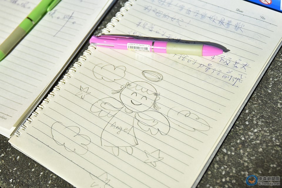 「來不及長大的天使,希望你帶著不捨的力量,往前飛。」內湖女童斷頸案,引發全台人民關注,不少人相當生氣,甚至聚集在警局前爆打王景玉,但也有許多人自發性帶著花束、蠟燭、文具及娃娃及前往案發現場致意,傍晚也有一位女子帶著筆記本,不少民眾在上頭留下溫馨字眼,還畫上微笑天使,希望「小燈泡」忘記痛楚,一路好走。