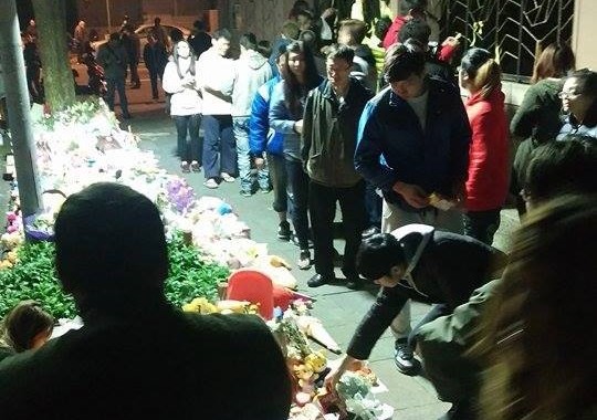 ▲雖然已到深夜,還是有非常多人前往事發現場致意。(圖/翻攝自加藤軍台灣粉絲團 2.0粉絲專頁)