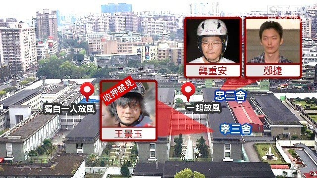 2014年5月21日,鄭捷在台北捷運上隨機砍人,導致4死24傷,他們兩人目前也都在台北看守所中,從鳥瞰圖看下去,龔重安和鄭捷兩人同住在忠二舍,放風時會一起遇到;王景玉則是住在旁邊的孝三舍,但因為他現在是收押禁見,所以放風時,疑似是在這藍色區塊獨自一人。