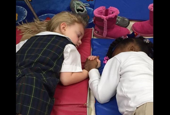 根據《Today》報導,在美國密西西比州任教的艾利斯(Olivia Ellis)日前在午休時間結束後,打算叫醒教室內的學生,剛好看到班上2名感情很好的女孩趴在一起睡覺,一黑一白的小手緊緊牽在一起,「她們睡得很甜,當時我只知道我必需停下來拍下這珍貴的一幕。」