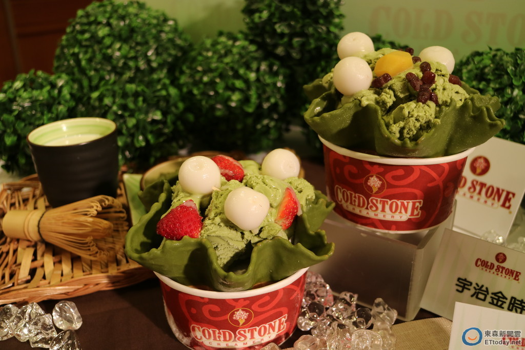 ▲COLD STONE抹茶季,融合滿滿白玉、栗子、草莓製成宇治金時風味冰淇淋。(圖/記者徐恩樂攝,下同)