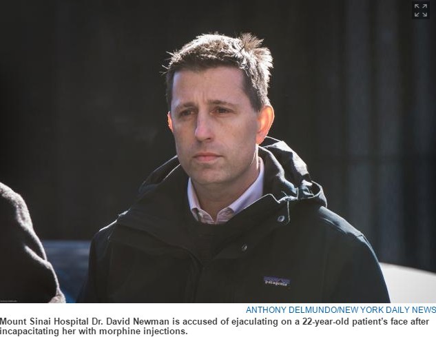 據《紐約每日郵報》報導,大衛是西奈山醫院急診室醫生,日前遭病患指控在進行治療時,以過量嗎啡將她麻醉,趁她半迷糊之際,肆意撫摸她的身體,還在旁邊脫褲自慰,最後更在她身上射精。