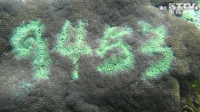 ▲珊瑚上有大大的綠色字體。