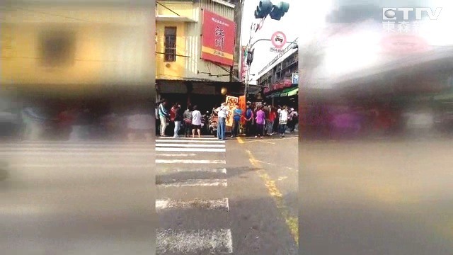 機車騎士來到台南知名春捲店,但看到長長排隊人龍簡直傻眼,於是不死心一路跟著排隊路線走,才發現人潮繞著圓環一路排到婚紗店門口,這場景實在有夠誇張。