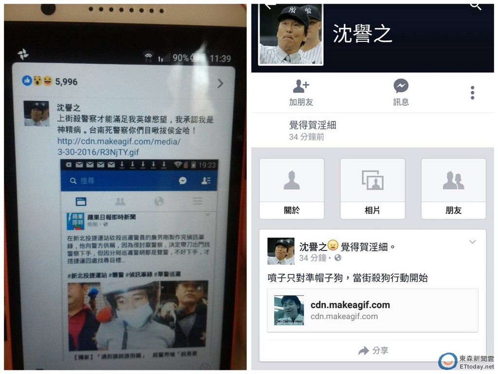 ▲有民眾向警方報案,屬名「沈譽之」的網友在臉書上接連發表嗆殺警察的言論。(圖/記者楊佩琪翻攝)