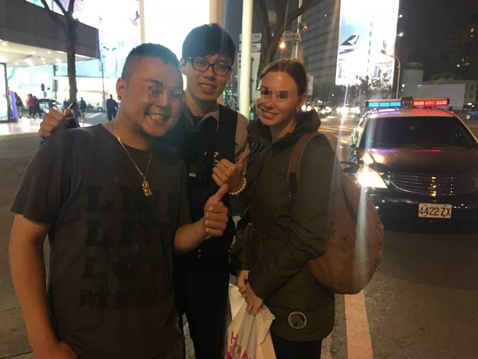 ▲兩名荷蘭籍遊客開心和警員蘇健傑合影。(圖/翻攝高雄市新興分局臉書粉絲專頁)