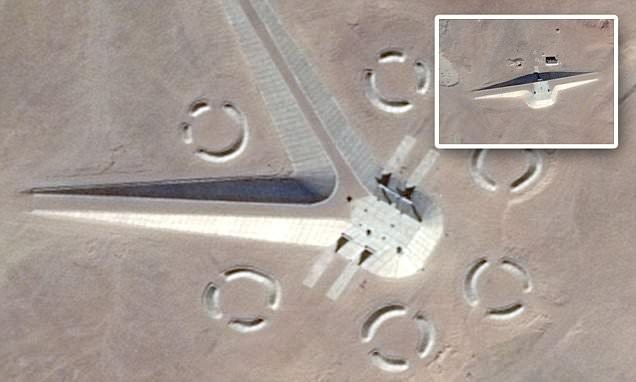 該神秘建築群由兩個細長建築物和多個神秘圓圈組成,從空中俯瞰,外型古怪的建築群似乎是一個太空基地,充滿未來感的設計,讓人對其用途產生很多聯想。有人認為它跟幽浮有關 。