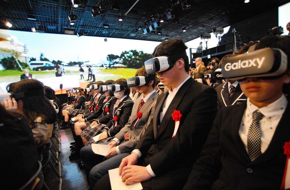 在東京六本木會場中,共73名學生配戴Gear VR虛擬眼鏡,360度無死角觀看校長奧平博一在沖繩主校區的致辭與升旗儀式。據日本「經濟新聞網」報導,這是世界上首次運用VR技術辦的開學典禮。