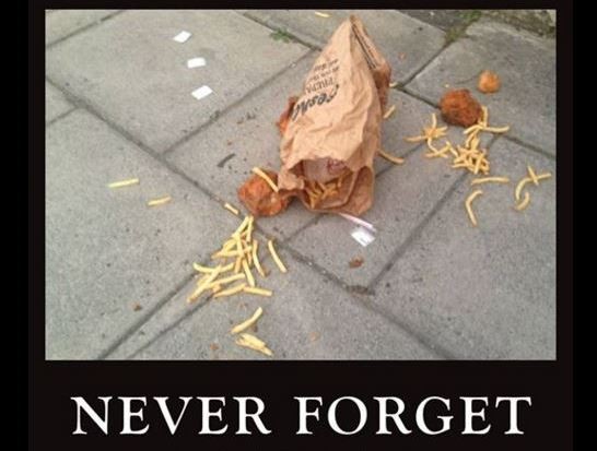 英國卓特咸(Cheltenham)街頭日前有人不慎將肯德基餐點打翻,整袋的薯條與炸雞散落在人行道上。沒想到這個景象隨即在社群網站上引發熱烈迴響,網友紛紛悼念「遭遺棄的速食餐點」,甚至質疑英國廣播公司(BBC)為何不報導這起「真正的悲劇」。