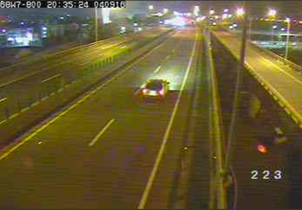 新竹縣台68快速道路9日發生嚴重車禍,20歲謝姓男子凌晨疑似酒醉,竟在快速道路上把車停在路中央,神智不清「下車尿尿」,導致一輛黑色轎車為了閃避當場撞上分隔島翻覆,後方另一輛轎車也剎車不及追撞上,2名駕駛雙雙受傷,釀禍的謝男也遭波及倒地不起。