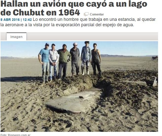 阿根廷一架小飛機於1964年墜毀於邱布特省(Chubut)南方的湖底,搜救行動直至1980年停止;然而,上週被發現在乾涸湖中的泥濘裡,包括當時機上4名罹難者,讓搜救的行動時隔51年劃下句點。