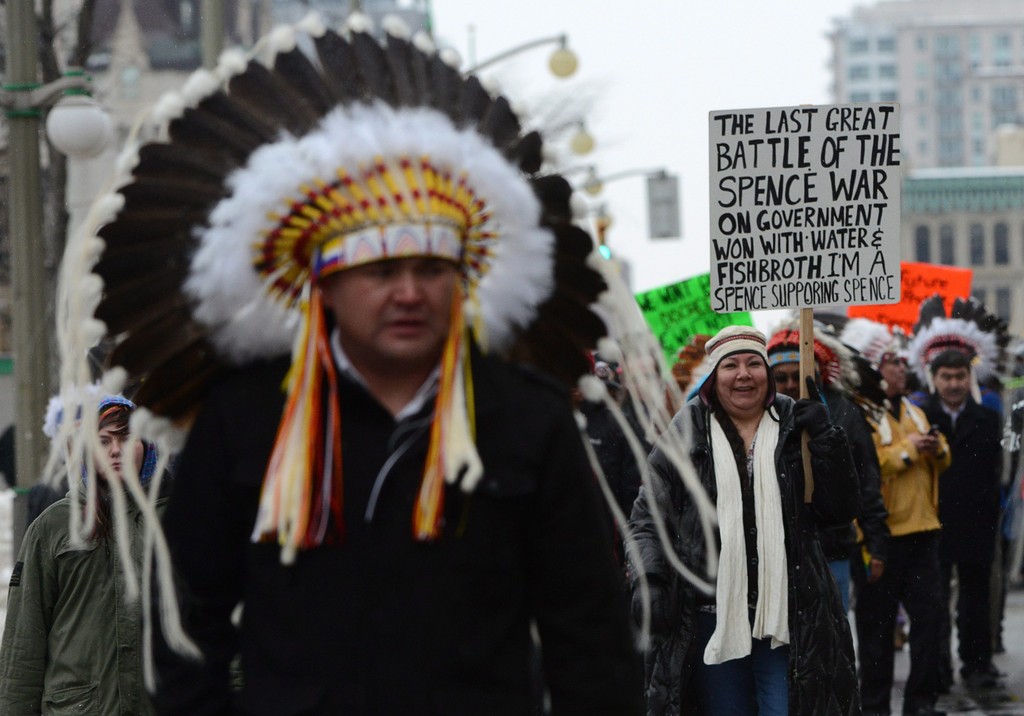 ▲2013年時,「阿塔瓦皮斯基特第一民族」的支持者在渥太華國會山莊外舉行示威,爭取原住民權益。(圖/達志影像/美聯社)