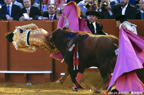 看了都好痛!西班牙塞維爾(Sevilla)一名年僅19歲的鬥牛士9日在表演過程中,公牛突然爆走,舉起牛角刺入他的臀部。這名鬥牛士當下渾身欲血,鮮紅的血液還沿著牛角流下,令人怵目驚心。