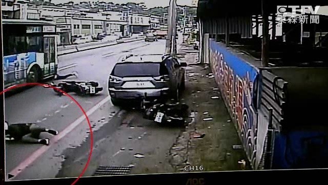 一部由張姓司機駕駛的三重客運857路公車,11日上午9點10分左右,行經八里龍米路一段52號前(往八里方向),因右側兩部機車發生擦撞,公車閃躲不及,其中周姓研究生摔倒後被捲入車底且遭拖行,臟器外露當場死亡。驚險車禍發生瞬間的監視器曝光,讓人看了心驚膽跳。