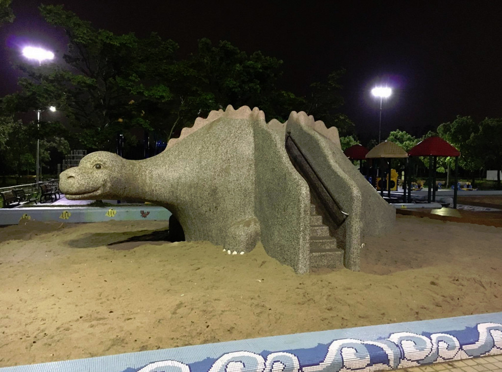 去年台北市市民抗議大安森林公園的磨石滑梯遭市府公燈處無故拆除後,公燈處承諾蓋回,日前終於蓋好開放,然而家長們卻發現,滑道低矮窄短、平台擁擠、又無法親子同樂的山寨恐龍滑梯,令人失望。還我特色公園行動聯盟表示,公燈處和廠商毫無考量人口流量及做好低齡化的設計,將可能導致孩童危險,質疑政府是便宜行事。