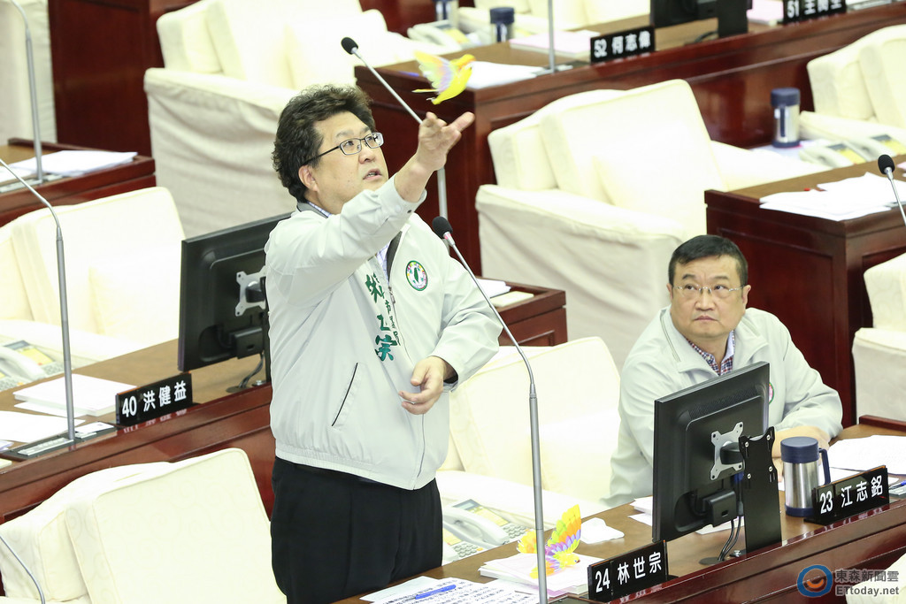 林世宗在下午質詢時,則要求柯忠於民意,不要放市民鴿子,並在議場中當場射出一隻電動玩具鴿,飛動聲響引發現場人員關注;他隨後拿起另一隻鴿子送給柯文哲,而柯也笑著接手。