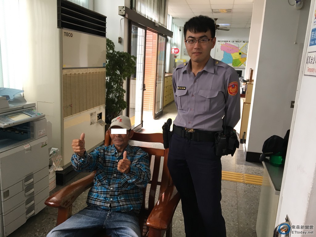 嘉義市政府警察局竹園派出所日前接獲通報,有一名迷途鄭姓老伯獨自行走在大溪路,警員沈輝煌、吳輝宇獲報後立即到場,不過,因他不知家住何處,只好先把人載返派出所休息,這時有眼尖員警發現老伯頭戴的鴨舌帽上,用簽字筆寫了一組電話號碼,最後果真順利連繫到家屬。