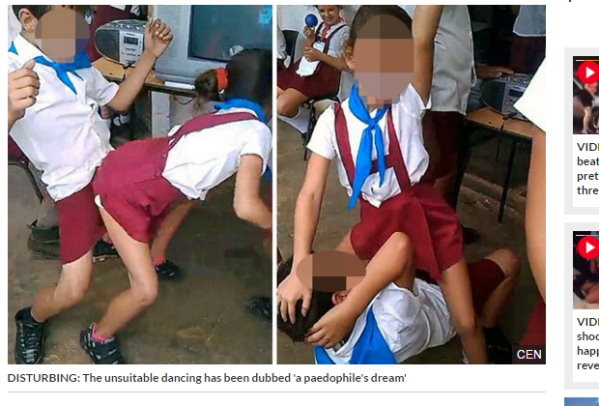 最近網路上流傳一段影片,古巴的一處小學,好幾名男童和女童竟然就穿著學校制服大跳豔舞,不但有出現「2女貼1男」的情況,甚至還出現女童下體磨蹭男童下體、男童下體頂女童下體的誇張行徑。事後了解這是一名男童的父親拍下,他po網分享後竟然還感到十分「自豪」。