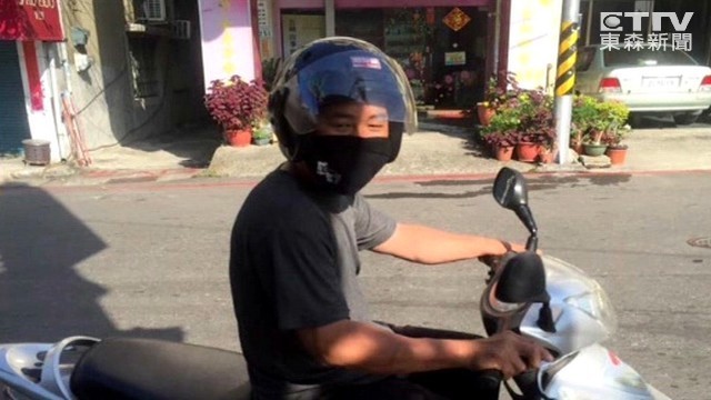 ▲ 全罩式安全帽、口罩遮臉,怪客全副武裝。