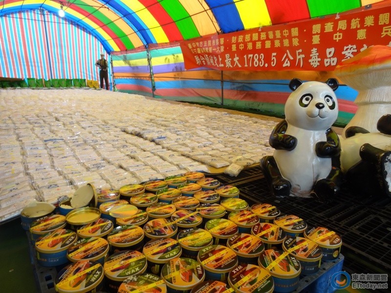 ▲調查局和關務署查獲藏在貓熊樹脂擺件、汽車蠟內的1783.5公斤毒品。(圖/翻攝財政部關務署台中關網站)
