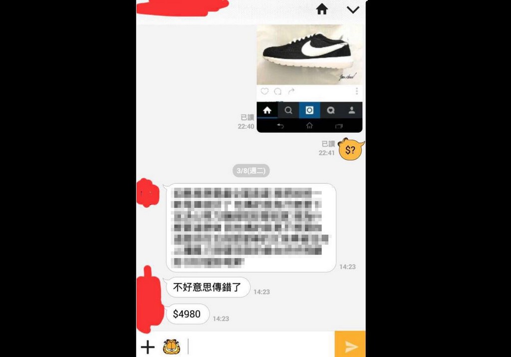 網友在笨版PO文提到,「以下是我朋友的故事,她想買鞋,於是加了代購的官方Line後問價錢,但卻得到這樣的回覆...」。只見截圖中,老闆回應,「他媽的我為什麼要下定決心、努力賺錢把妳娶回家,我為什麼要這麼做,我他媽的就是不想要妳這麼好的女孩、那麼棒的女孩再被任何人糟蹋,只想要用我的餘生好好照顧妳、好好案妳啦」。
