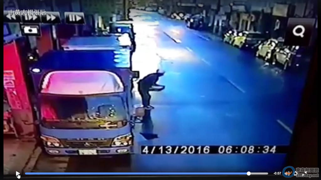 ▲透過店家監視器發現,張姓男子熟熟路爬上貨車,準備偷蛋。(圖/記者楊佩琪翻攝)