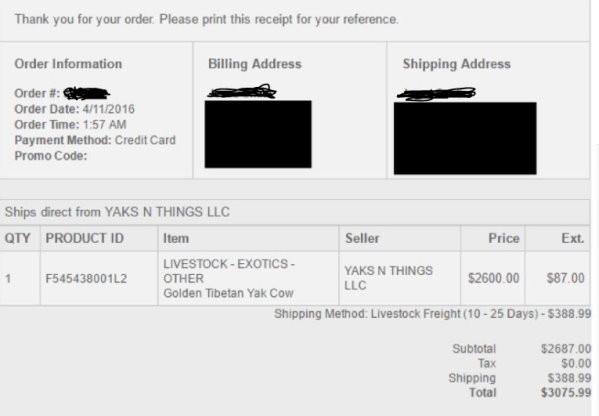 ▲國外有一名男子在吃了安眠藥之後,竟然上網訂購西藏氂牛,所幸及時中止交易。(圖/翻攝自imgur)