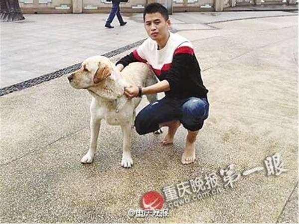 根據《重慶晚報》報導,14日下午1時左右,一名就讀國二的學生「小冉」(化名),當天他和朋友雷小姐帶著3條狗狗涪陵濱江路文化長廊漫步,突然間3條狗狗往河邊跳下去,原來河面上有一名中年女子載浮載沉,其中一隻年紀較大的狗狗「戇豆」往女子身上頂,但對方並無反應。