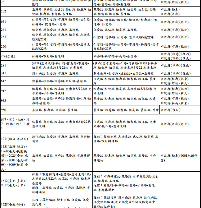 台北市18日將配合「軍民聯合防空(萬安39號)演習」,自18日13至15時止實施管制(視現場管制情況提前或延後),行經市府路(松壽至松高路段)及新仁愛路的公車路線將配合改道行駛,影響公車路線數為29條,取消站位計3個。公共運輸處表示,請民眾至鄰近站位或改道動線上的既有站位候車。