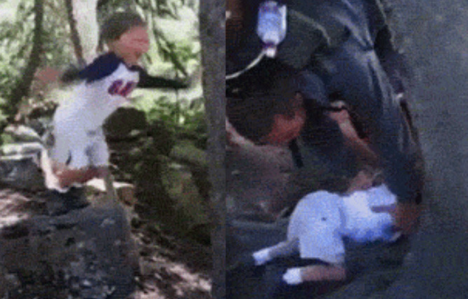 女兒是爸爸上輩子的情人,不過這位爸爸也太偏心,同樣都是自己的小孩,女兒從岩石上跳下來,就穩穩接住還親了她一下,讓女兒笑開懷,但輪到兒子可就沒這麼幸運,只見可愛的男童,站在岩石旁邊,張開雙手等待爸爸的迎接,沒想到爸爸一個移位,兒子直接趴地,讓人好傻眼。