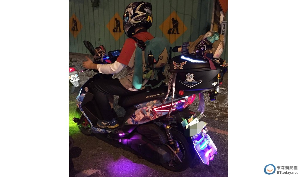 只見多種動漫貼紙裝飾車身、置物箱,還背了個初音造型的背包,再加上紫色燈管根本超吸睛。網友們看完紛紛表示,「只要不影響別人,沒有什麼不可以的,這樣才是真正的帥」、「小東路看過,那時候他還沒裝箱子」、「感覺好多人陪他騎車」、「做自己真的很好」、「狂,應該花了不少錢」。
