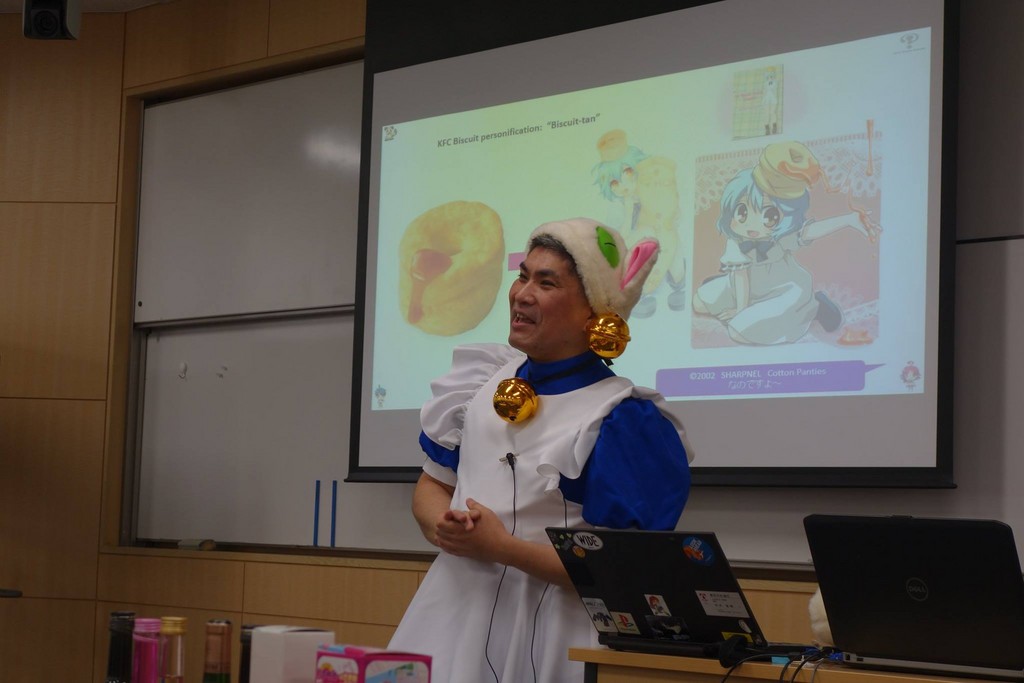 教授uhyo從2011年開始,在上課時將自己打扮成各種不同的動畫角色,《進擊的巨人》、《庫洛魔法使》、《魔法少女智乃》等,「原先都是花錢去買的,後來發現學生反應不錯,因此就開始自己用裁縫機做了。」專長在宅文化、流行文化等,在自己網站寫下,「最喜歡的衣服材質則是pvc和綢緞,不過為了不影響上課,我不會戴假髮跟化妝。」