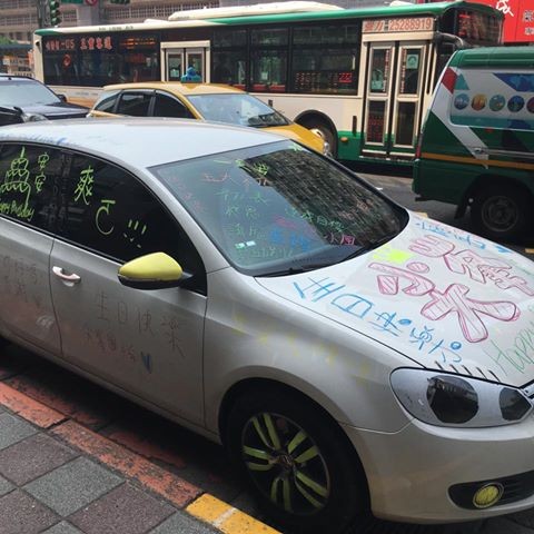▲這樣慶生快樂嗎?壽星愛車被寫滿「生日快樂」。(圖/翻攝自爆料公社臉書)