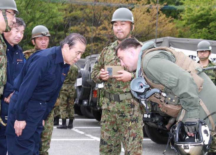 根據《共同社》報導,日本防衛相中谷元日前與美國駐日大使卡羅琳·肯尼迪(Caroline Bouvier Kennedy)與駐日美軍司令約翰多藍(Lt. Gen. John Dolan)通電,就熊本地震後美方出動魚鷹戰機運輸物資表達感謝。日本官房長官菅義偉也感謝美方的援助,同時也感謝台灣各界在災情發生後,立刻發起募款活動,但他表示目前只接受美方的援助。