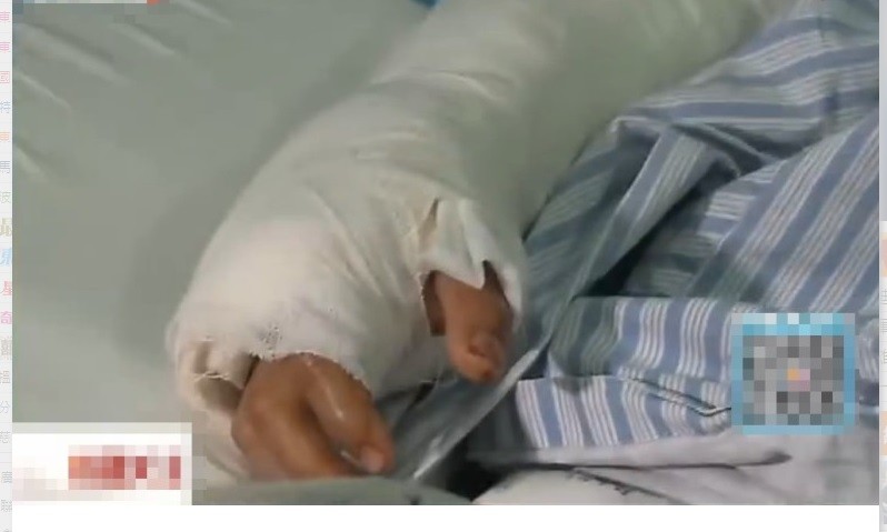 湖南省人民醫院小兒骨科醫生李欣說,小天的右手肘關節呈現180度扭轉,肘關節被轉至前方,尺骨、橈骨也被扭轉成粉碎性骨折,右前臂更斷成了6截。