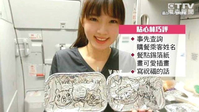 許多人出國喜歡搭廉價航空,雖然廉航和一般航空服務稍有差異,但也讓空服員有更多時間和乘客互動,喜歡畫畫的威航空姐林巧評,因為會在乘客點的餐盒「錫箔紙」留下可愛塗鴉,並祝福乘客有愉快的旅程,引起網友討論。