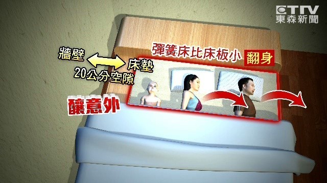 桃園又發生一起嬰兒在睡覺時窒息事件!一名5個月大的女嬰日前卡在彈簧床墊與牆壁間的20公分空隙中,被19歲媽媽發現時已經臉色發黑、身體僵硬,緊急送往國軍桃園總醫院後仍宣告不治。經警方調查,因彈簧床比床板還小,疑似是因為一家人睡覺翻身時,床墊滑動導致出現縫隙,才會釀成這起意外。