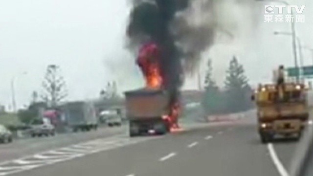 國道中山高速公路嘉義水上北上路段,25日下午發生大貨車火燒車的意外,鍾姓司機聽到後方車輛猛按喇叭,才驚覺車子起火,趕緊停靠路邊逃出,幸未造成傷亡。