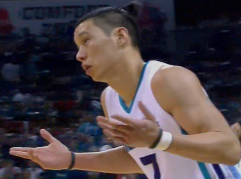 第4節林書豪右側持球單打,在對手對位情況下,出手三分球竟幸運擦板命中,當場令全場球迷欣喜若狂,而豪小子進球後更是做出「雙手一攤」動作,與在場觀戰的老闆喬丹1992年在總冠軍系列首戰,對上拓荒者半場猛砍6記三分球後經典動作如出一轍。