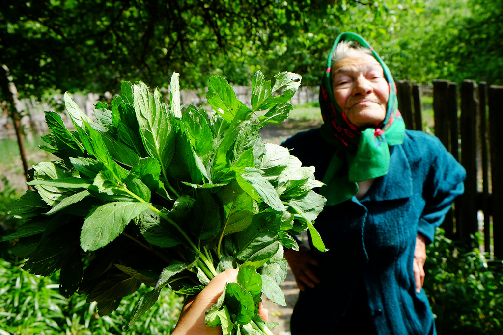▲車諾比首位回歸者羅莎莉亞已於2015年12月初離世,她開心地介紹起自己的菜園,還摘下一大把薄荷送給台灣採訪團員。