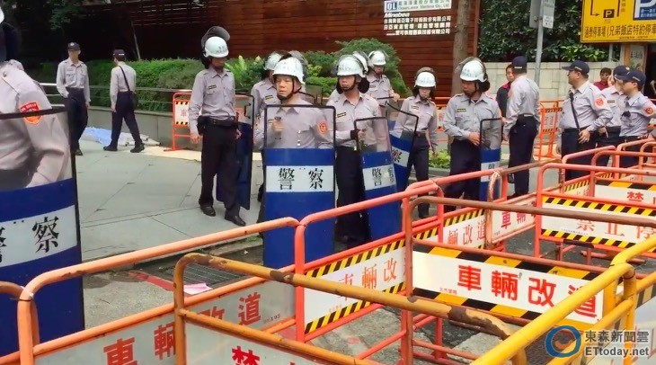 ▲為避免衝突,警方集結在交流協會外。(圖/記者翁嫆琄攝)