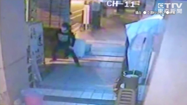 根據店家的監視影像,一名黑衣黑褲、戴安全帽和口罩的男子,拿著棍棒往這家小吃店衝,隨後在店門口猛力敲打店家的生財器具、門口的招牌,男子砸完後快跑閃人,後方還有另一人接應。