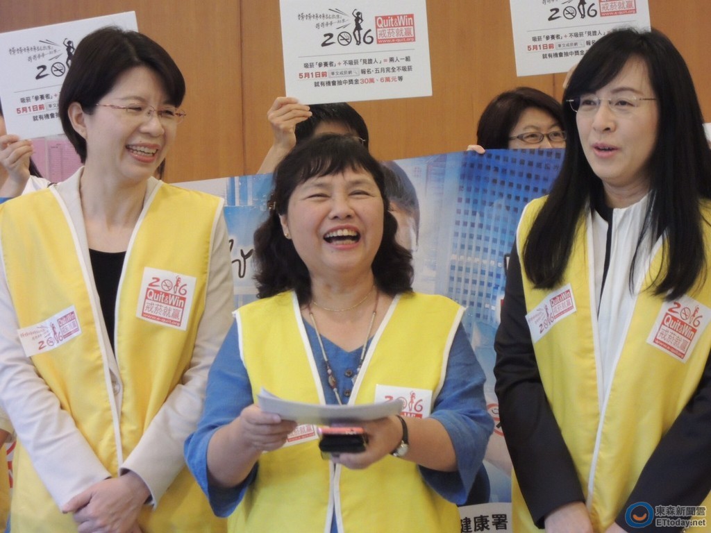 國健署、董事基金會主辦2016「戒菸就贏比賽」進入報名倒數,民進黨立委黃秀芳、陳曼麗、吳玉琴、陳瑩、林靜儀在立法院發送報名表,希望立法院同仁與家屬報名,一同達成戒菸目標。陳瑩更誇下海口,要鼓勵黨團總召柯建銘少抽菸。